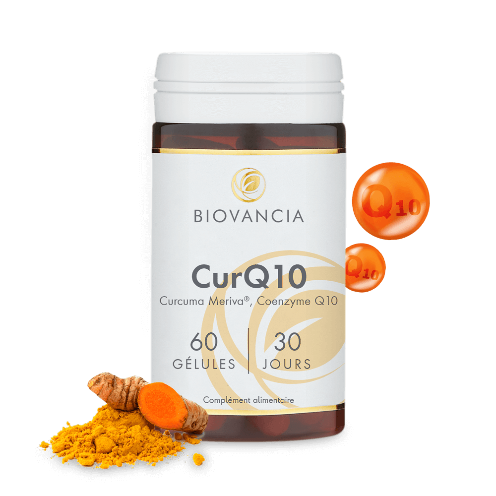 La formule CurQ10 contient du curcuma breveté Meriva® hautement biodisponible et de la coenzyme Q10 (CoQ10) pour retrouver toute votre énergie vitale.