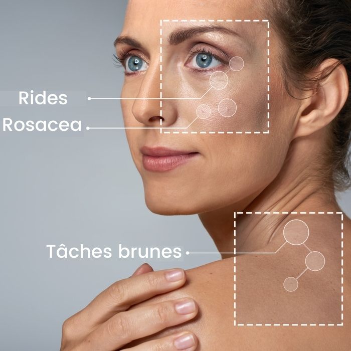 Sur votre peau, cela se traduit par l’accélération du vieillissement cutané, l’apparition de rides et de taches brunes.